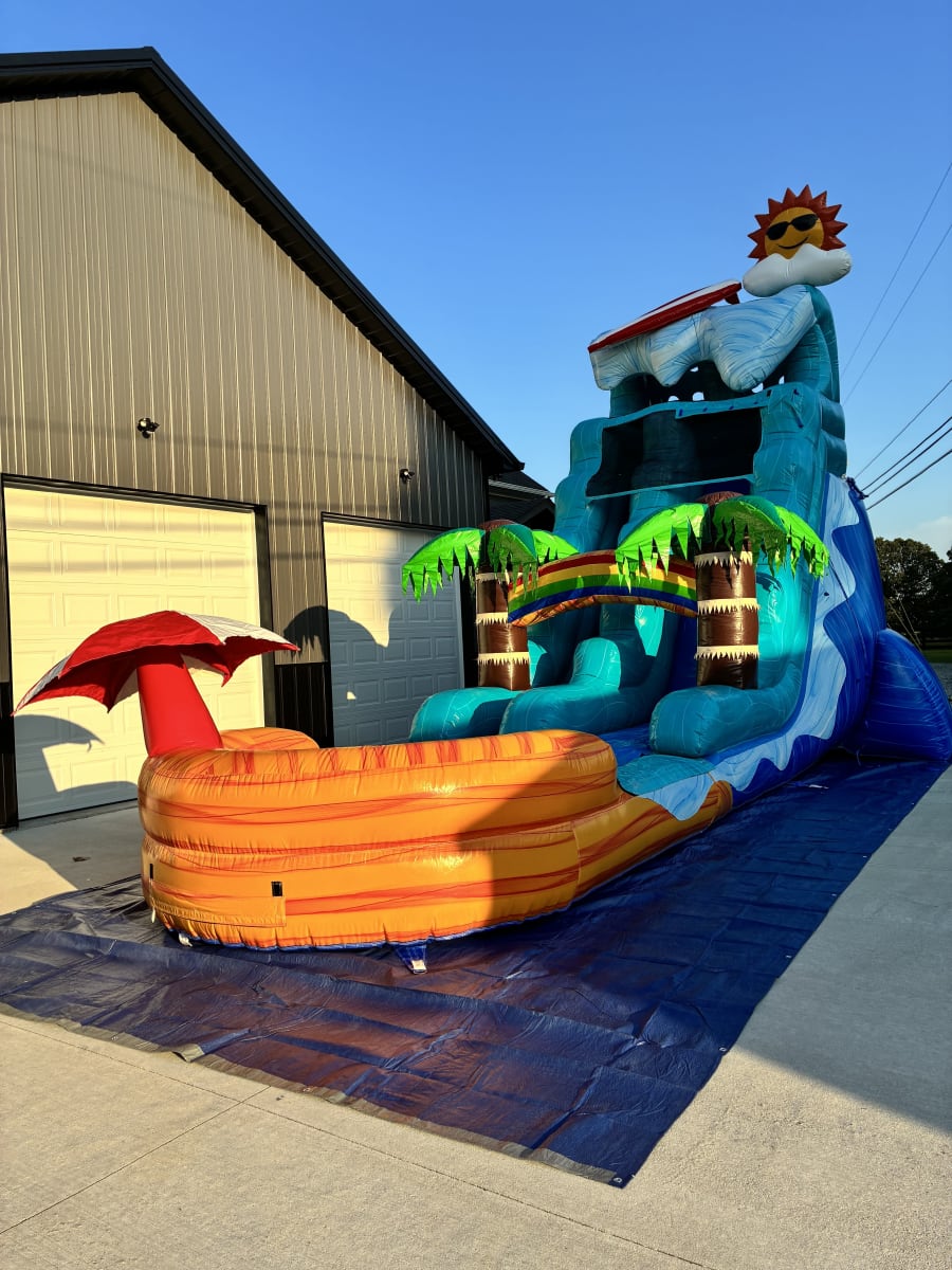 • 18' Beach Wave Water Slide: Dive into adventure with our impressive 18-foot water slide, complete with a deep pool at the base for safe, splashy landings. The vibrant beach design sets the scene for an unforgettable day in the sun! 🏄‍♂️