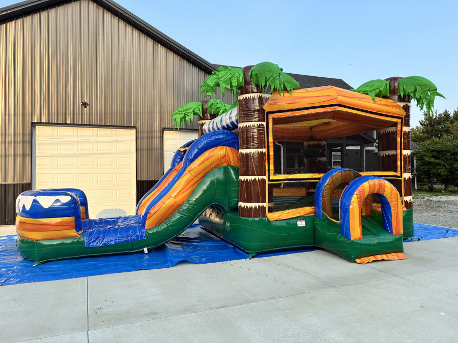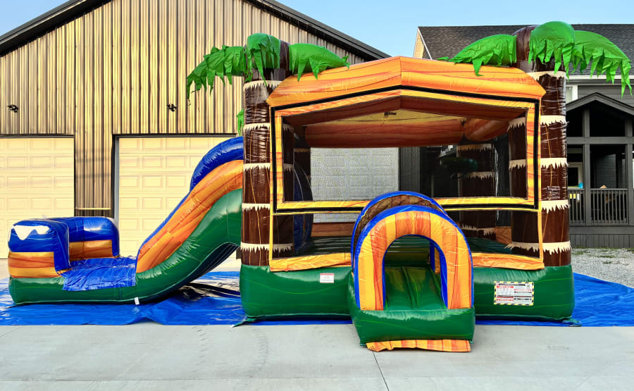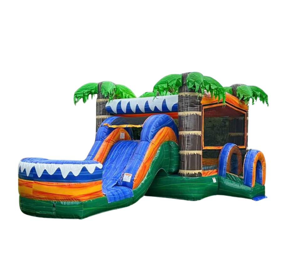Make your next party the talk of the town with our Tropical Ocean Combo Bounce House! Designed with vibrant tropical ocean graphics and palm trees, this inflatable combo is perfect for birthdays, school events, block parties, or any special occasion. Watch as kids' imaginations soar while they bounce, slide, and play in a safe, fun-filled environment. If you're searching for the Tropical Ocean Combo Bounce House, look no further—our team brings the adventure right to your doorstep!