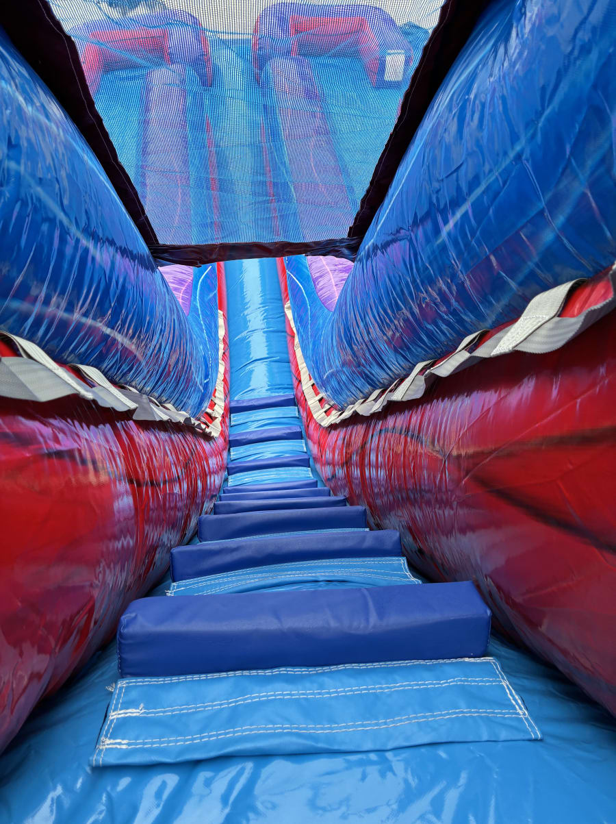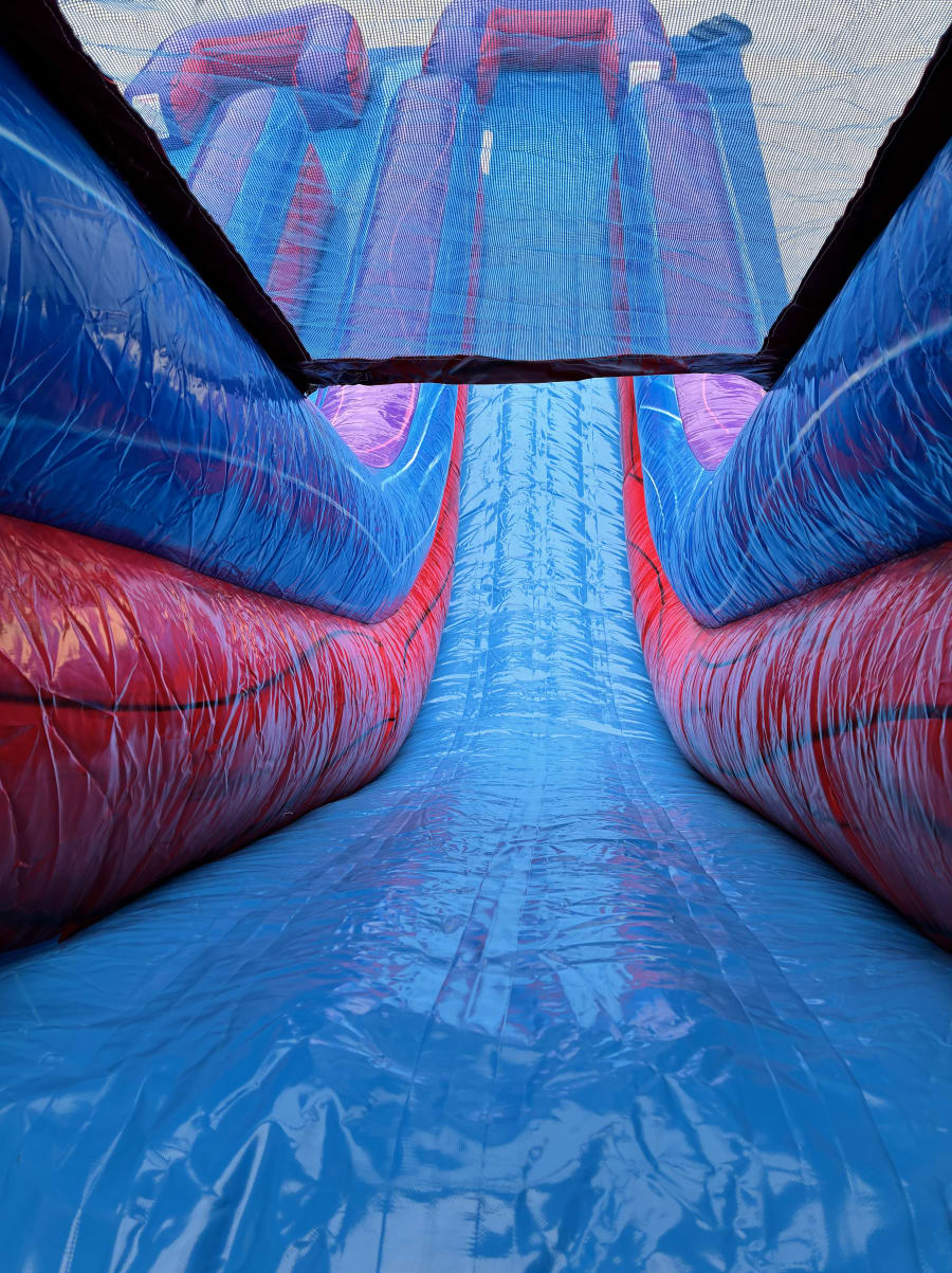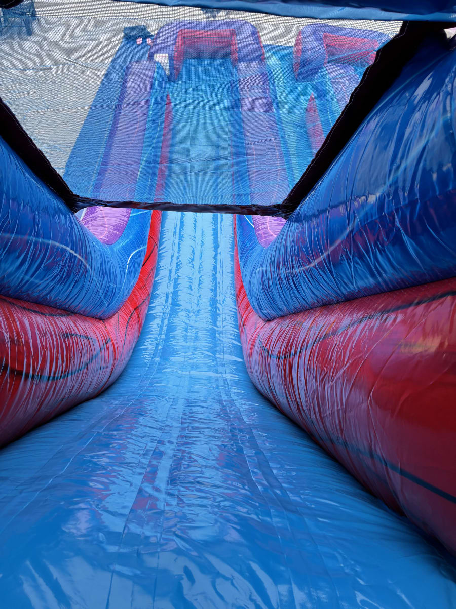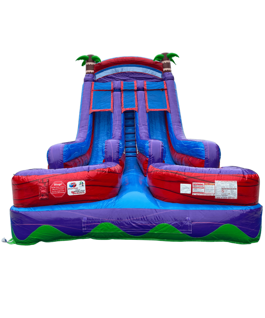 Make your next event unforgettable with the 18’ Racer’s Reef Dual Lane Water Slide in Fairview, TN & surrounding areas. 🌴🌊 This vibrant, high-energy inflatable combines bright purple, red and blue colors with playful palm tree accents. Perfect for birthday parties, summer block parties, church events, and backyard fun. Fast lanes, a central ladder, and an inflated hybrid splash pool deliver nonstop excitement for kids and teens. 🏁